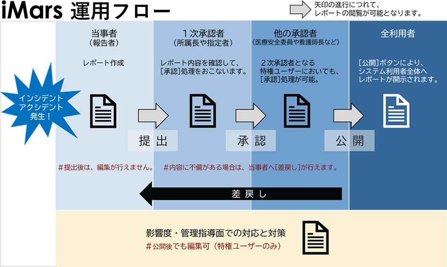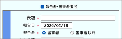 - レポート入力時、当事者・報告者を表示させない、匿名表示する機能があります